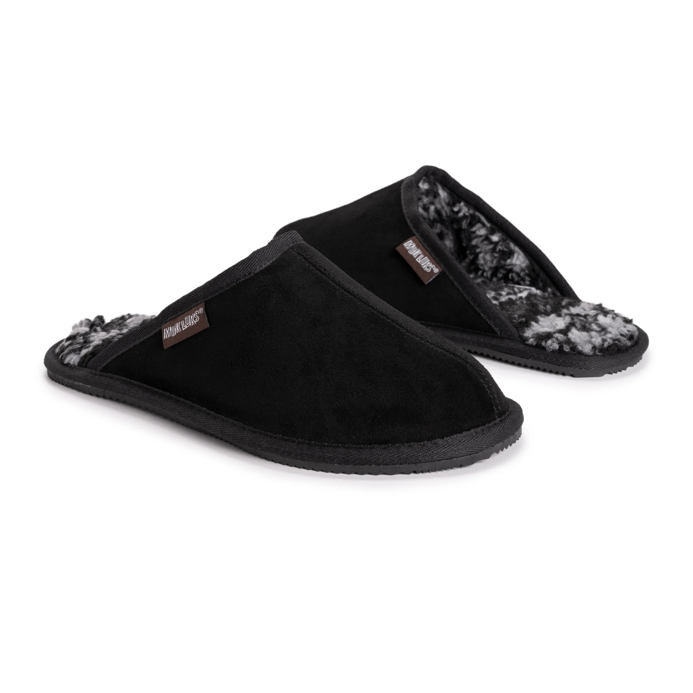 Keep toes warm this cold weather season with MUK LUKS® Men's Dave Printed Berber Suede Scuffs. Genuine suede and faux fur lining work together to keep you warm while the foam insole offers superior comfort.