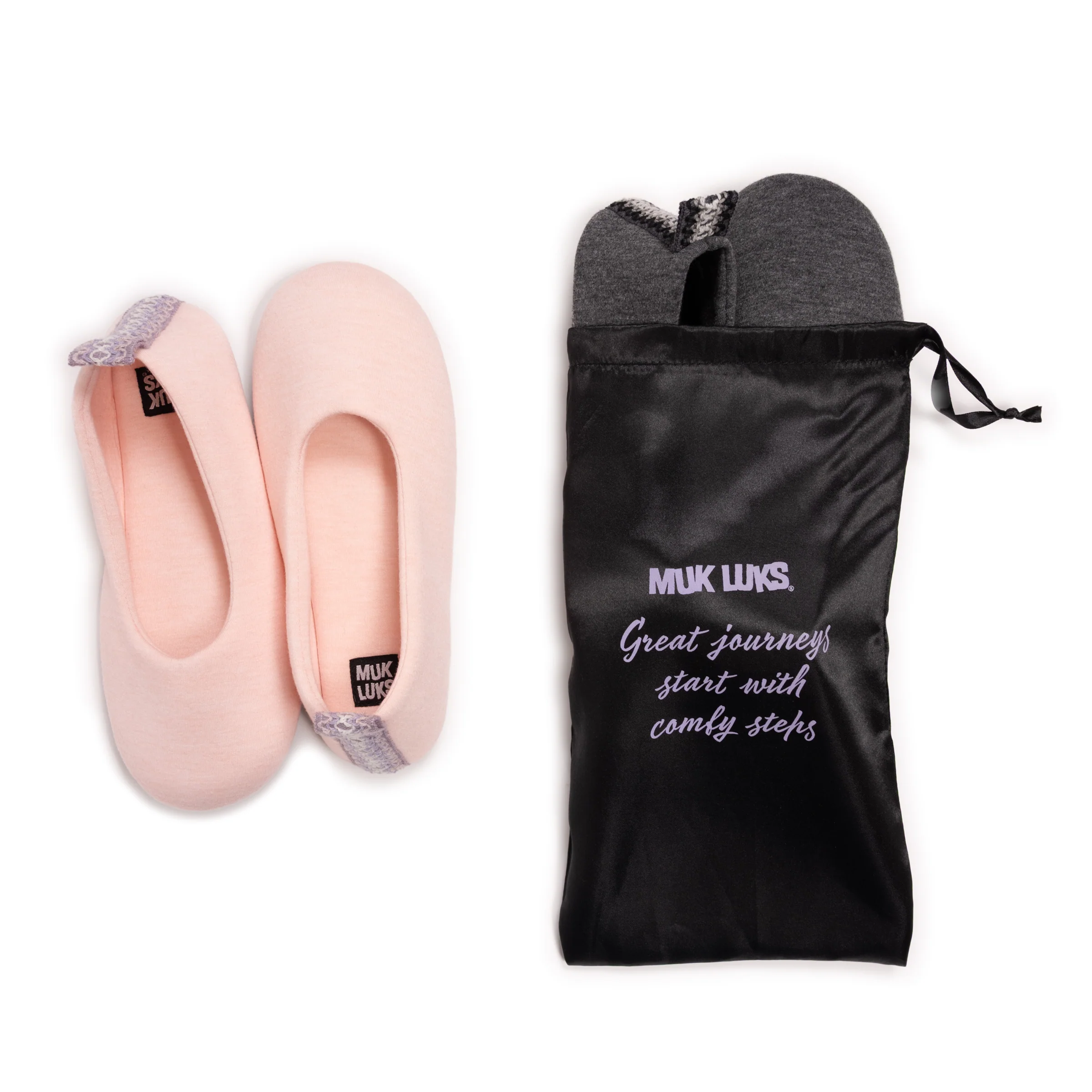 Experience Ultimate Comfort On-the-Go with MUK LUKS Women's 2 Pair Pack Travel Slippers your perfect companions for comfort on the move. With a luxurious multi-layer foam cushion and convenient step-down heel, these slippers provide unmatched comfort and functionality. Crafted to be lightweight, these travel slippers won't weigh you down! Fold them into your suitcase or carry-on easily in a special bonus travel bag! Whether you're on a plane, in a hotel, or simply relaxing at home, enjoy comfort wherever your journey takes you.