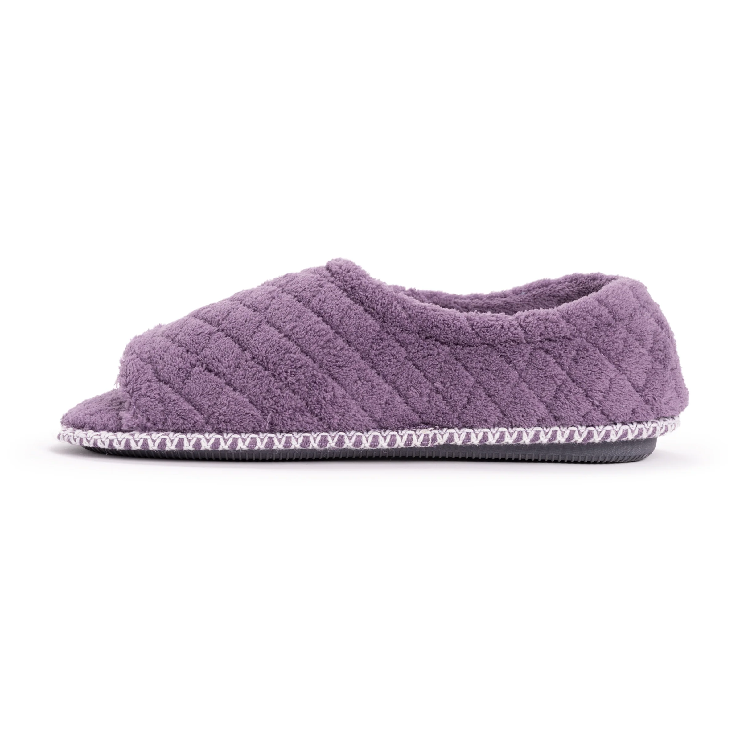 The MUK LUKS® Women's MaryLou Micro Chenille Slide Slipper has become a favorite with our healthcare and senior customers. These slippers and shoes are each designed to adjust to different foot shapes, sizes and irregularities. These styles offer adjustability for swelling, edema, bunions and post surgery foot care. In addition, the adaptability of our MaryLou Micro Chenille Slide Slipper offers easy on and off features for those needing assistance when dressing. Hand wash in cold water with mild soap. Do not bleach. Dry flat. Imported.